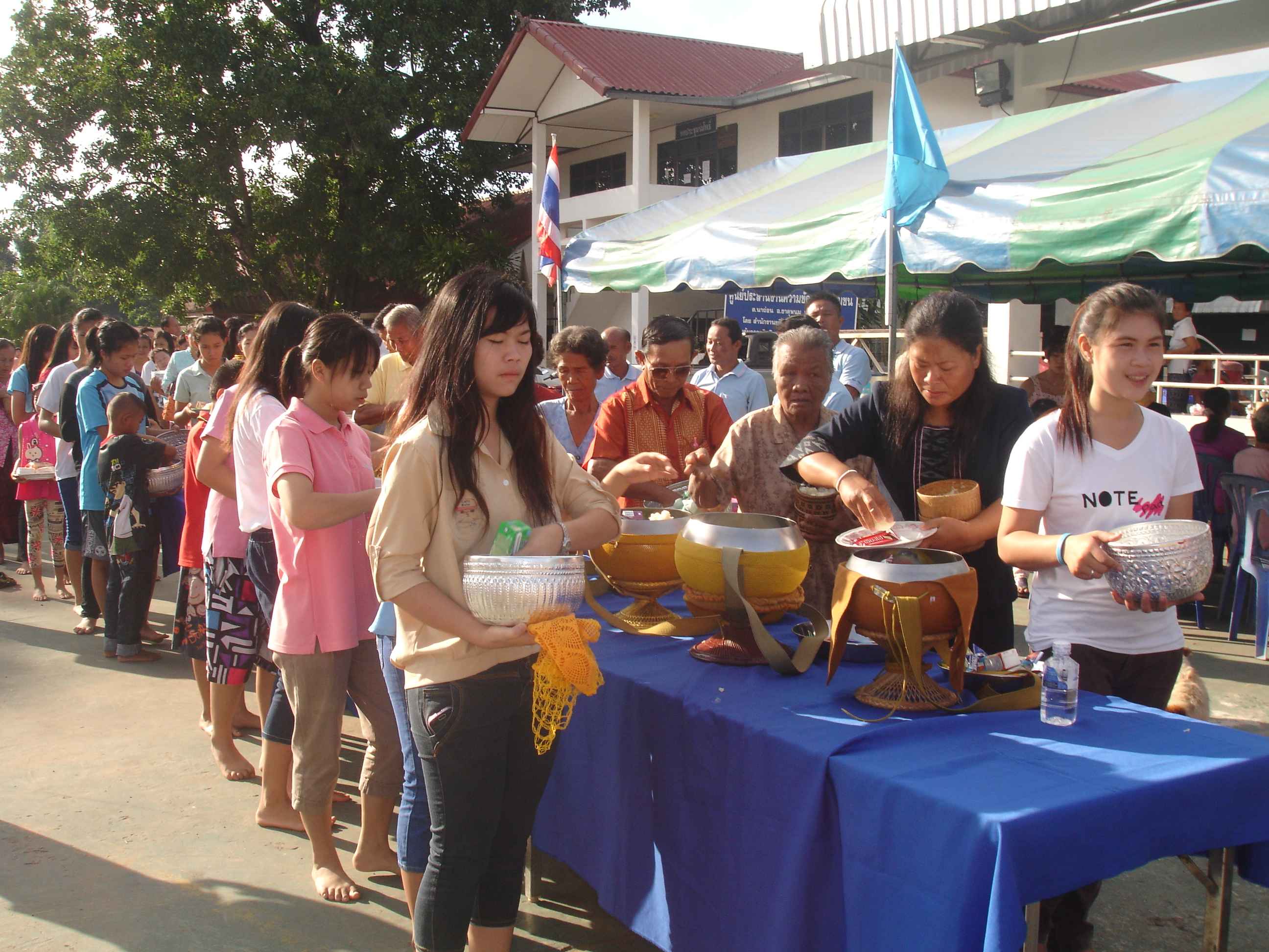 ทำบุญตักบาตร 12 สิงหาคม 2556 ที่ อบต.นาถ่อน